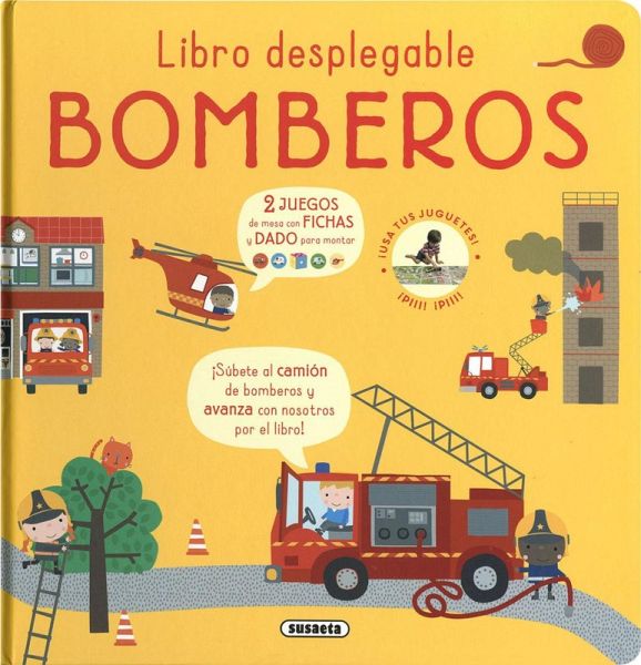 ¡Abre este librp y vive una aventura! Elige un lugar para desplegarlo en el suelo y súbete al camión de bomberos: apagarás incendios, rescatarás gatos ¡y un montón de cosas más! Incluye 2 juegos de mesa con fichas y dado para montar.