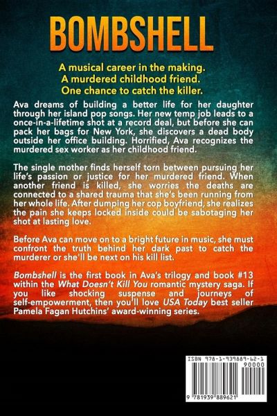 A musical career in the making. A murdered childhood friend. One chance to catch the killer. Ava dreams of building a better life for her daughter through her island pop songs. Her new temp job leads to a once-in-a-lifetime shot at a record deal, but before she can pack her bags for New York, she discovers a dead body outside her office building. Horrified, Ava recognizes the murdered sex worker as her childhood friend. The single mother finds herself torn between pursuing her life’s passion or justice for her murdered friend. When another friend is killed, she worries the deaths are connected to a shared trauma that she’s been running from her whole life. After dumping her cop boyfriend, she realizes the pain she keeps locked inside could be sabotaging her shot at lasting love. Before Ava can move on to a bright future in music, she must confront the truth behind her dark past to catch the murderer or she'll be next on his kill list. Bombshell is the first book in Ava’s trilogy within the What Doesn’t Kill You romantic mystery saga. If you like sexy single moms, shocking suspense, and journeys of self-empowerment, then you’ll love USA Today best seller Pamela Fagan Hutchins’ award-winning series. Buy Bombshell to get into the rhythm with a fast-paced pop murder mystery today! ¿¿¿ See why Pamela wins contests and makes best seller lists. USA Today Best Seller #1 Amazon Best Seller Top 50 Amazon Romantic Suspense and Mystery Author Silver Falchion for Best Adult Mystery USA Best Book Awards Cross-Genre Fiction Amazon Breakthrough Novel Award, Romance, Quarter-finalist ¿¿¿ Once Upon A Romance calls Hutchins an "up-and-coming powerhouse writer." If you like Sandra Brown or Janet Evanovich, you will love Pamela Fagan Hutchins. A former attorney who splits her time between Nowheresville, Texas and the frozen north of Snowheresville, Wyoming, Pamela lived in the U.S. Virgin Islands for nearly ten years. She refuses to admit to taking notes for this series during that time. ¿¿¿ The Ava series reviews are in, and they're good. Very, very good. "Just when I think I couldn't love another Pamela Fagan Hutchins novel more, along comes Ava. She's smart and sassy, with a story full of juicy plot twists. I enjoyed Bombshell from cover to cover!" — Marcy McKay, author of Pennies from Burger Heaven "To finally get a whole book of Ava's beautiful voice and attitude was so much fun. And then to see that her outer armor was mixed with the very real insecurities and struggles that we can all relate to was magical. She personifies bombshell in every sense of word and I can't wait to have her voice in my head again in Stunner." — Tara Scheyer, Grammy-nominated musician, Long-Distance Sisters Book Club "Entertaining, complex, and thought-provoking. Each book gets better and better and better...It was so hard to put this book down once I started reading." — Ginger Copeland, power reader ¿¿¿ Catch more adventures with Ava and her friends in the What Doesn't Kill You romantic mysteries. Scroll up and grab your copy of Bombshell today.