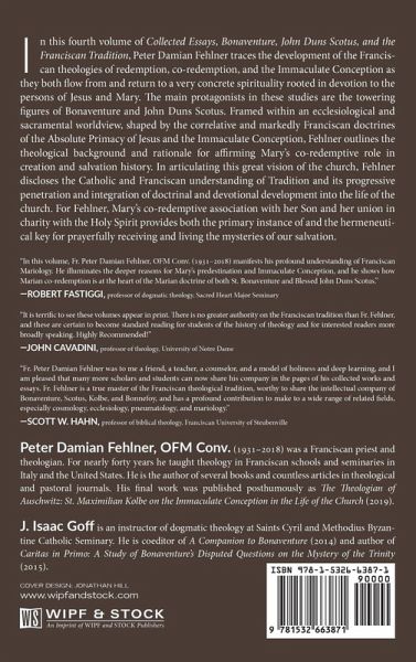 In this fourth volume of Collected Essays, Bonaventure, John Duns Scotus, and the Franciscan Tradition, Peter Damian Fehlner traces the development of the Franciscan theologies of redemption, co-redemption, and the Immaculate Conception as they both flow from and return to a very concrete spirituality rooted in devotion to the persons of Jesus and Mary. The main protagonists in these studies are the towering figures of Bonaventure and John Duns Scotus. Framed within an ecclesiological and sacramental worldview, shaped by the correlative and markedly Franciscan doctrines of the Absolute Primacy of Jesus and the Immaculate Conception, Fehlner outlines the theological background and rationale for affirming Mary's co-redemptive role in creation and salvation history. In articulating this great vision of the church, Fehlner discloses the Catholic and Franciscan understanding of Tradition and its progressive penetration and integration of doctrinal and devotional development into the life of the church. For Fehlner, Mary's co-redemptive association with her Son and her union in charity with the Holy Spirit provides both the primary instance of and the hermeneutical key for prayerfully receiving and living the mysteries of our salvation.