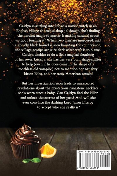 Caitlyn is settling into life as a novice witch in an English village chocolate shop - although she's finding the hardest magic to master is making caramel sauce without burning it! When two men are murdered, and a mythical black hound is seen haunting the countryside, the village gossips are sure dark witchcraft is to blame. Caitlyn decides to do a little magical sleuthing of her own. Luckily, she has her very own shape-shifter to help her (even if he does come in the shape of a toothless old vampire) not to mention her naughty kitten Nibs, and her sassy American cousin! But her investigation soon leads to unexpected revelations about the mysterious runestone necklace she wore as a baby. Can Caitlyn find the killer and unlock the secrets of her past? And will she ever convince the dashing Lord James Fitzroy to accept who she really is?
