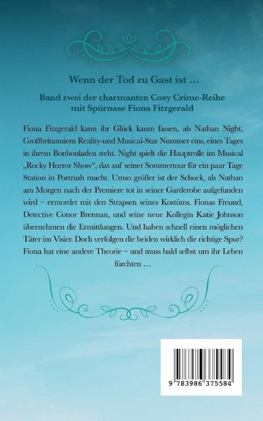 Wenn der Tod zu Gast ist … Band zwei der charmanten Cosy Crime-Reihe mit Spürnase Fiona Fitzgerald Fiona Fitzgerald kann ihr Glück kaum fassen, als Nathan Night, Großbritanniens Reality-und Musical-Star Nummer eins, eines Tages in ihrem Bonbonladen steht. Night spielt die Hauptrolle im Musical „Rocky Horror Show", das auf seiner Sommertour für ein paar Tage Station in Portrush macht. Umso größer ist der Schock, als Nathan am Morgen nach der Premiere tot in seiner Garderobe aufgefunden wird – ermordet mit den Strapsen seines Kostüms. Fionas Freund, Detective Conor Brennan, und seine neue Kollegin Katie Johnson übernehmen die Ermittlungen. Und haben schnell einen möglichen Täter im Visier. Doch verfolgen die beiden wirklich die richtige Spur? Fiona hat eine andere Theorie – und muss bald selbst um ihr Leben fürchten … Weitere Titel dieser Reihe Bonbons, Whiskey und ein Mord (ISBN: 9783968176000) Erste Leser:innenstimmen „Die liebenswerte Bonbonköchin ermittelt wieder und das Miträtseln hat großen Spaß gemacht!" „Unterhaltsam und leicht zu lesen, aber gleichzeitig spannend und mit überraschendem Ende gespickt." „Da ich nicht nur Krimi-Fan bin, sondern auch die Rocky Horror Show liebe, habe ich mehr sehr über die Story gefreut und das Buch sofort verschlungen!" „Fesselnder Cosy Crime mit sympathischer Hobbydetektivin."