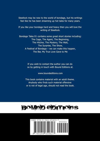 Steellock may be new to the world of bondage, but his writings feel like he has been dreaming up hot tales for many years. If you like your bondage hard and heavy then you will love the writing of Steellock. Bondage Tales 01 contains some great short stories including: The Cage The Agent The Beginning The Hitcher The Mystery The Wait The Surprise The Show A Festival of Bondage - we can make this happen The Bar My True Love Gave to Me