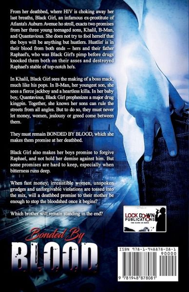 From her deathbed, where HIV is choking away her last breaths, Black Girl, an infamous ex-prostitute of Atlanta's Auburn Avenue ho stroll, exacts two promises from her three young teenaged sons, Khalil, B-Man, and Quantavious. She does not try to fool herself that the boys will be anything but hustlers. Hustlin' is in their blood from both ends -- hers and their father Raphael's, who was Black Girl's pimp before drugs knocked them both on their asses and destroyed Raphael's stable of top-notch ho's. In Khalil, Black Girl sees the making of a boss mack, much like his pops. In B-Man, her youngest son, she sees a fierce jackboy and a heartless killa. In her baby boy, Quantavious, Black Girl prophesizes a major drug kingpin. Together, she knows her sons can rule the streets from all angles. But to do so, they must never let money, women, jealousy or greed come between them. They must remain BONDED BY BLOOD, which she makes them promise at her deathbed. Black Girl also makes her boys promise to forgive Raphael, and not hold her demise against him. But some promises are hard to keep, especially when bitterness runs deep. When fast money, irresistible women, unspoken grudges and unforgivable violations are tossed into the mix, will a deathbed promise to their mother be enough to stop the bloodshed once it begins? Which brother will remain standing in the end?