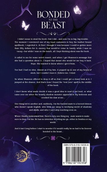 I didn't mean to steal the book-but I did... and now I'm in big, big trouble. The moment I convinced one of my loyal customers to buy the leather-bound spellbook, I regretted it. At first I thought it was because I could've gotten more than fifty dollars for it-money that would've come in handy while I was on vacay-but while I was on the beach, all I kept thinking about was the book. It called to me for some weird reason, and when I got Shannon's message that she had a question about it, I hoped that meant she would let me buy it back. Nope. She wanted to know where I got it from. Too bad I had no idea. Almost as if by fate, it popped up in one of my boxes of stock, but I couldn't trace it. Believe me, I tried. So when Shannon offered to drop it off so that I could get a closer look at it, I jumped at the chance. And that's how I found the "true love" spell in the middle of the book. I don't know what made me decide it was a good idea to read it out loud, or what came over me when the beastly shadow monster appeared in my bedroom and crooked his claw at me... One thing led to another and, suddenly, I'm the bonded mate to a horned demon who doesn't speak English, who stole me away to a terrifying world of shadows and skulls, and who I can't stop touching even so. When I finally understand him, there's only one thing my new mate wants to make sure is clear: I'm his. He has no intention of letting me go, either in Sombra or my world. And it isn't long before I start to wonder if it would really be so bad to be forever bonded to the beast... especially when I discover just what mating during the gold moon in Sombra leads to.