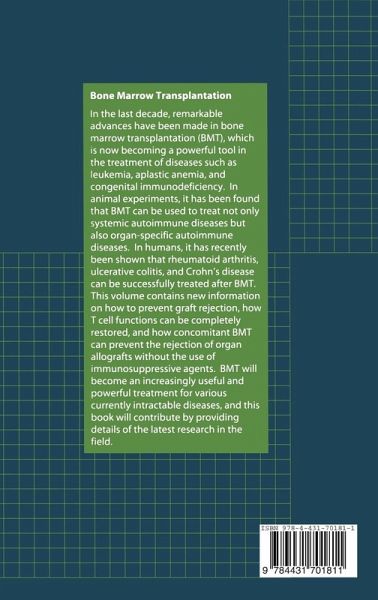 In the last decade, remarkable advances have been made in bone marrow transplantation (BMT), which is now becoming a powerful tool in the treatment of diseases such as leukemia, aplastic anemia, and congenital immunodeficiency. In animal experiments, it has been found that BMT can be used to treat not only systemic autoimmune diseases but also organ-specific autoimmune diseases. In humans, it has recently been shown that rheumatoid arthritis, ulcerative colitis, and Crohn's disease can be successfully treated after BMT. This volume contains new information on how to prevent graft rejection, how T cell functions can be completely restored, and how concomitant BMT can prevent the rejection of organ allografts without the use of immunosuppressive agents. BMT will become an increasingly useful and powerful treatment for various currently intractable diseases, and this book will contribute by providing details of the latest research in the field.