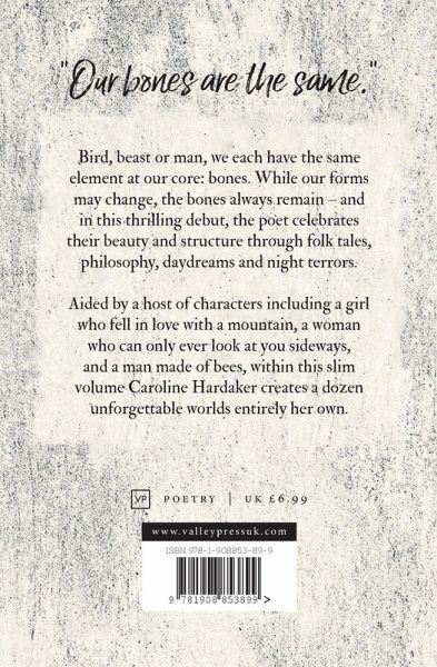 Bird, beast or man, we each have the same element at our core: bones. While our forms may change, the bones always remain - and in this thrilling debut, the poet celebrates their beauty and structure though folk tales, philosophy, day dreams and night terrors. Aided by a host of characters including a girl who fell in love with a mountain, a woman who can only ever look at you sideways, and a man made of bees, Caroline Hardaker creates a dozen unforgettable worlds entirely her own.