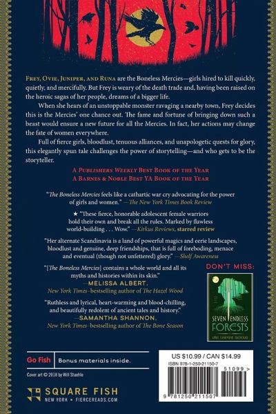 *A Publishers Weekly Best Book of the Year*, April Genevieve Tucholke's The Boneless Mercies is a dark and gorgeously drawn standalone YA fantasy about a band of mercenary girls in search of female glory. Frey, Ovie, Juniper, and Runa are the Boneless Mercies-girls hired to kill quickly, quietly, and mercifully. But Frey is weary of the death trade and, having been raised on the heroic sagas of her people, dreams of a bigger life. When she hears of an unstoppable monster ravaging a nearby town, Frey decides this is the Mercies' one chance out. The fame and fortune of bringing down such a beast would ensure a new future for all the Mercies. In fact, her actions may change the story arc of women everywhere. Full of fierce girls, bloodlust, tenuous alliances, and unapologetic quests for glory, this elegantly spun tale challenges the power of storytelling-and who gets to be the storyteller. Perfect for fans of Maggie Stiefvater, V.E. Schwab, and Heidi Heilig.