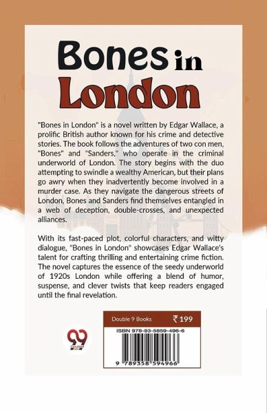 "Bones in London" is a novel written by Edgar Wallace, a prolific British author known for his crime and detective stories. The book follows the adventures of two con men, "Bones" and "Sanders," who operate in the criminal underworld of London. The story begins with the duo attempting to swindle a wealthy American, but their plans go awry when they inadvertently become involved in a murder case. As they navigate the dangerous streets of London, Bones and Sanders find themselves entangled in a web of deception, double-crosses, and unexpected alliances. With its fast-paced plot, colorful characters, and witty dialogue, "Bones in London" showcases Edgar Wallace's talent for crafting thrilling and entertaining crime fiction. The novel captures the essence of the seedy underworld of 1920s London while offering a blend of humor, suspense, and clever twists that keep readers engaged until the final revelation.