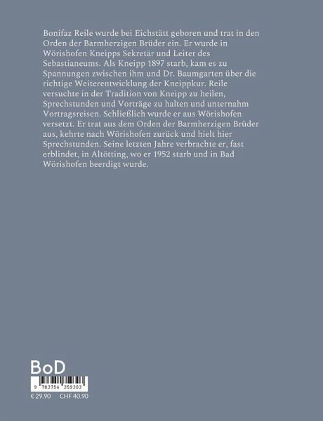 Bonifaz Reile wurde bei Eichstätt geboren und tat in den Orden der Barmherzigen Brüder ein. Er wurde in Wörishofen Kneipps Sekretär und Leiter des Sebastianeums. Als Kneipp 1897 starb kam es zu Auseinandersetzungen zwischen ihm und Dr. Baumgarten über die richtige Weiterentwicklung der Kneippkur. Reile versuchte in der Tradition von Kneipp zu heilen, Sprechstunden und Vorträge zu halten und unternahm Reisen. Schließlich wurde er aus Wörishofen versetzt. Er trat aus dem Orden der Barmherzigen Brüder aus, kehrte nach Wörishofen zurück und hielt hier Sprechstunden. Seine letzten Jahre verbrachte er, fast erblindet, in Altötting, wo er 1952 starb und in Bad Wörishofen beerdigt wurde.