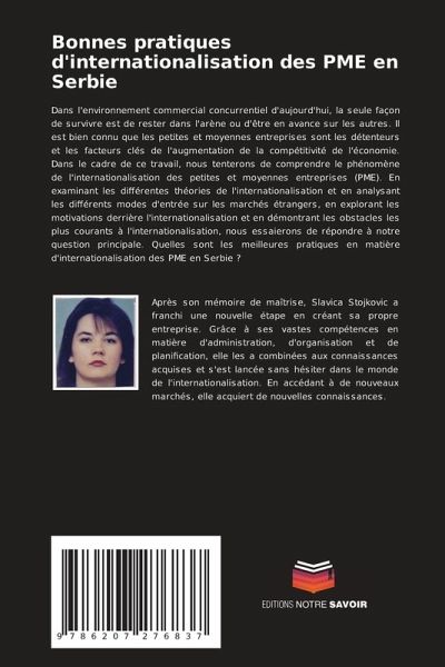 Dans l'environnement commercial concurrentiel d'aujourd'hui, la seule façon de survivre est de rester dans l'arène ou d'être en avance sur les autres. Il est bien connu que les petites et moyennes entreprises sont les détenteurs et les facteurs clés de l'augmentation de la compétitivité de l'économie. Dans le cadre de ce travail, nous tenterons de comprendre le phénomène de l'internationalisation des petites et moyennes entreprises (PME). En examinant les différentes théories de l'internationalisation et en analysant les différents modes d'entrée sur les marchés étrangers, en explorant les motivations derrière l'internationalisation et en démontrant les obstacles les plus courants à l'internationalisation, nous essaierons de répondre à notre question principale. Quelles sont les meilleures pratiques en matière d'internationalisation des PME en Serbie ?