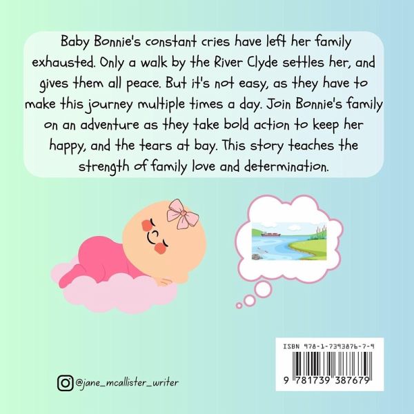 Baby Bonnie's constant cries have left her family exhausted. Only a walk by the River Clyde settles her, and gives them all peace. But it's not easy, as they have to make this journey multiple times a day. Join Bonnie's family on an adventure as they take bold action to keep her happy, and the tears at bay. This story teaches the strength of family love and determination.