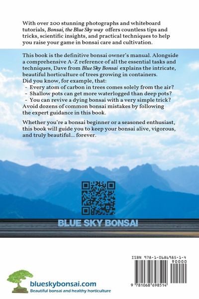 Blue Sky Bonsai's Definitive Guide to Bonsai Care and Cultivation Featuring over 200 stunning photographs and whiteboard tutorials, Bonsai, the Blue Sky way offers countless tips and tricks, scientific insights, and practical techniques to help you raise your game in bonsai care and cultivation. This book is the definitive bonsai owner's manual, containing a comprehensive A-Z reference of all the essential tasks and techniques. Unlike other books that focus primarily on the art, Bonsai, the Blue Sky Way also dives deep into the intricate, beautiful horticulture of trees growing in containers. Explore the fascinating biology of trees and shrubs, with entertaining explanations and practical advice that guide you on your journey towards mastering bonsai. Did you know, for example, that: Every atom of carbon in trees comes solely from the air? Shallow pots can get more waterlogged than deep pots? You can revive a dying bonsai with a very simple trick? Avoid dozens of common bonsai mistakes by following the expert guidance in this book. The author, Dave Seymour, is a bonsai horticulture teacher with tens of thousands of subscribers to his YouTube channel, Blue Sky Bonsai. With a lifelong career in technical documentation, he has developed a knack for making complex information simple and appealing. Combined with his passion for bonsai cultivation, tree photography and videography, this naturally led him to share his expertise with a wider audience. In this book, Dave brings the beautiful nature of bonsai horticulture to enthusiasts around the world. Whether you're a bonsai beginner or a seasoned enthusiast, this book will guide you to keep your bonsai alive, vigorous, and truly beautiful... forever.