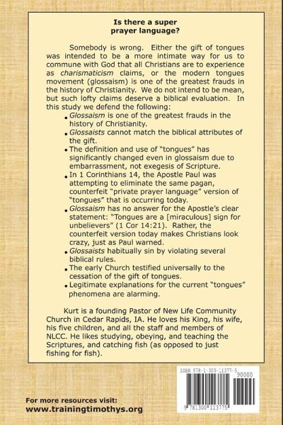 Is there a super prayer language? Somebody is wrong. Either the gift of tongues was intended to be a more intimate way for us to pray, or the modern tongues movement (glossaism) is one of the greatest frauds in Christianity. In this study we defend the following: ¿ Glossaists cannot match the biblical attributes of the gift. ¿ The definition of "tongues" has significantly changed even in glossaism due to embarrassment, not exegesis of Scripture. ¿ In 1 Corinthians 14, the Apostle Paul was attempting to eliminate the same pagan, counterfeit "private prayer language" version of "tongues" that is occurring today. ¿ Glossaism has no answer for the Apostle's clear statement: "Tongues are a [miraculous] sign for unbelievers" (1 Cor 14:21). Rather, the counterfeit version today makes Christians look crazy, just as Paul warned. ¿ The early Church testified universally to the cessation of the gift of tongues. ¿ Legitimate explanations for the current "tongues" phenomena are alarming.