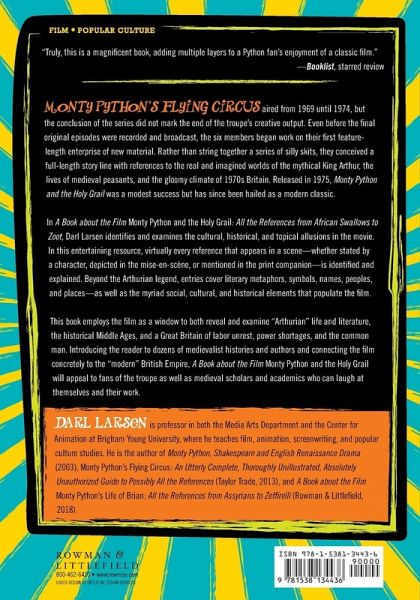 Monty Python's Flying Circus aired from 1969 until 1974, but the conclusion of the series did not mark the end of the troupe's creative output. Even before the final original episodes were recorded and broadcast, the six members began work on their first feature-length enterprise of new material. Rather than string together a series of silly skits, they conceived a full-length story line with references to the real and imagined worlds of the mythical King Arthur, the lives of medieval peasants, and the gloomy climate of 1970s Britain. Released in 1975, Monty Python and the Holy Grail was a modest success but has since been hailed as a modern classic. In A Book about the Film Monty Python and the Holy Grail:All the References from African Swallows to Zoot, Darl Larsen identifies and examines the cultural, historical, and topical allusions in the movie. In this entertaining resource, virtually every reference that appears in a scene-whether stated by a character, depicted in the mise-en-scène, or mentioned in the print companion-is identified and explained. Beyond the Arthurian legend, entries cover literary metaphors, symbols, names, peoples, and places-as well as the myriad social, cultural, and historical elements that populate the film. This book employs the film as a window to both reveal and examine "Arthurian" life and literature, the historical Middle Ages, and a Great Britain of labor unrest, power shortages, and the common man. Introducing the reader to dozens of medievalist histories and authors and connecting the film concretely to the "modern" British Empire, A Book about the Film Monty Python and the Holy Grail will appeal to fans of the troupe as well as medieval scholars and academics who can laugh at themselves and their work.
