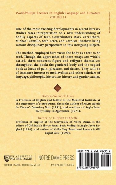 One of the most exciting developments in recent literary studies bases interpretation on a new understanding of bodily aspects of text. Contributors Mary Carruthers, Michael Camille, Seth Lerer, and Carolyn Dinshaw bring various disciplinary perspectives to this intriguing subject. The method employed here views the body as a text to be read. Though the approaches of these essays are widely varied, three concerns figure and refigure themselves throughout the book: the gendered body and the copied book as locus of pain, pleasure, and desire. They will be of immense interest to medievalists and other scholars of language, philosophy, history, art history, and gender studies. Frese and O'Keeffe explore the liminal areas between the book and the body from contemporary perspectives. Though the approaches of these essays are widely varied, three concerns figure throughout the book: the gendered body and the copied book as locus of pain, pleasure, and desire.