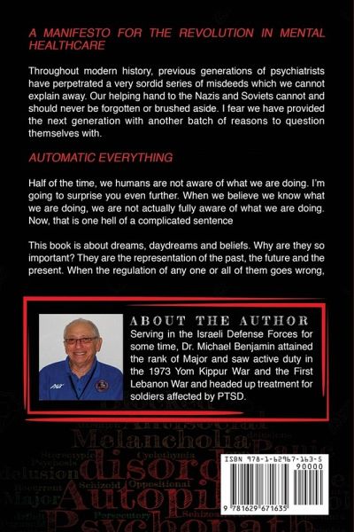 Review from Sir Graeme Catto (President and chair of the British Medical Council) This is a fascinating and very personal book. Benjamin holds our attention through his mastery of story-telling and despite the avalanche of pretty awful jokes. His tales of the patients he encountered in his long career as a psychiatrist are fascinating and make us take his critical views of his specialty seriously. The title, with its intentional biblical overtones, sets the scene. David was a young colleague who suffered a prolonged and agonising death after a cycling accident left him quadriplegic. The substance of the book, "a manifesto for the revolution in mental health care", are the views they would have discussed had David survived.Michael Benjamin was a fellow medical student more than half a century ago. Our paths diverged and I have learned of his clinical career and writings only from a distance. His humanity, however, remains undimmed. His care for the patients, his wish to understand the basis of their psychoses and his belief in the importance of the personal interaction (the doctor-patient relationship) shines throughout the book. It is no surprise that he is excoriating on the dependence now placed on pharmaceutical treatments and on the pharmaceutical industry for their, often uncritical, promotion. He shines a bright and uncomfortable light on many treatments that were, until quite recently, in common clinical practice without robust evidence for their efficacy and which caused real harm.His views on our development from infancy are well written and based on his vast experience of psychiatry over many years. The unconscious processes that govern our conscious actions are well described as are the possible links between dreams, day-dreams and psychoses. I, and I suspect the author, do not know if these concepts help us understand mental ill-health any better but the intellectual arguments are certainly worth considering. This text is no conventional assessment of mental illness and its treatment. It is much more. It is the culmination of a lifetime treating real patients with real, and often intractable problems. Benjamin’s reflections reflect the humanity of the man, a quality not always found in clinical practice. They also confirm my view that psychiatry was not for me. From the Backcover... A Manifesto for the Revolution in Mental HealthcareThroughout modern history, previous generations of psychiatrists have perpetrated a very sordid series of misdeeds which we cannot explain away. Our helping hand to the Nazis and Soviets cannot and should never be forgotten or brushed aside. I fear we have provided the next generation with another batch of reasons to question themselves with. Automatic Everything Half of the time, we humans are not aware of what we are doing. I’m going to surprise you even further. When we believe we know what we are doing, we are not actually fully aware of what we are doing. Now, that is one hell of a complicated sentenceThis book is about dreams, daydreams and beliefs. Why are they so important? They are the representation of the past, the future and the present. When the regulation of any one or all of them goes wrong, all hell breaks loose.