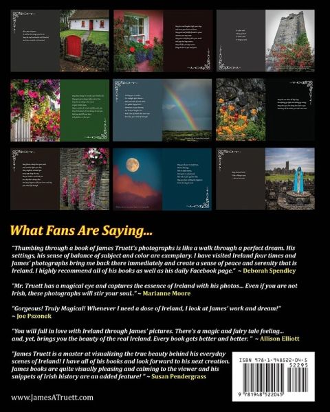 Enjoy the enchanting beauty and timeless wisdom of Ireland through this collection of Irish blessings and proverbs paired with deeply spiritual images by bestselling Author/Photographer James A. Truett. This fifth volume in the Moods of Ireland series, Mystical Moods of Ireland, Vol. V: Book of Irish Blessings & Proverbs, is a coffee-table style book featuring 61 Irish blessings and tidbits of wisdom passed down through generations and illustrated with lovely images of the Irish countryside. If you've already visited Ireland, these kind verses and soulful images certainly will trigger fond memories, and if you've yet to visit the Emerald Isle, you might just find yourself making travel plans after viewing this book! Order your copy of Mystical Moods of Ireland, Vol. V: Book of Irish Blessings & Proverbs today and enjoy the inspiration and wisdom of old Ireland!