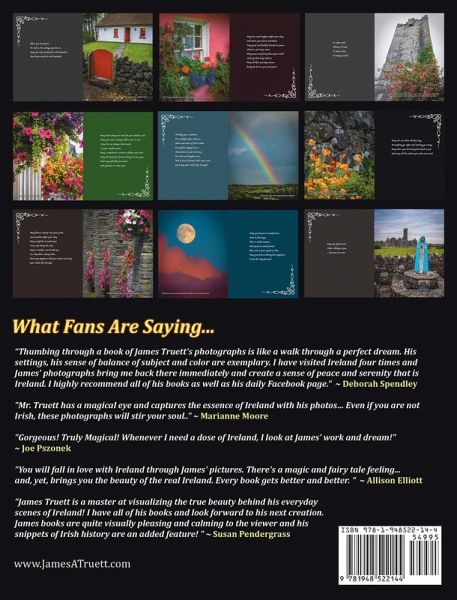 Enjoy the enchanting beauty and timeless wisdom of Ireland through this collection of Irish blessings and proverbs paired with deeply spiritual images by bestselling Author/Photographer James A. Truett. This fifth volume in the Moods of Ireland series, Mystical Moods of Ireland, Vol. V: Book of Irish Blessings & Proverbs, is a coffee-table style book featuring 61 Irish blessings and tidbits of wisdom passed down through generations and illustrated with lovely images of the Irish countryside. If you've already visited Ireland, these kind verses and soulful images certainly will trigger fond memories, and if you've yet to visit the Emerald Isle, you might just find yourself making travel plans after viewing this book! Order your copy of Mystical Moods of Ireland, Vol. V: Book of Irish Blessings & Proverbs today and enjoy the inspiration and wisdom of old Ireland!