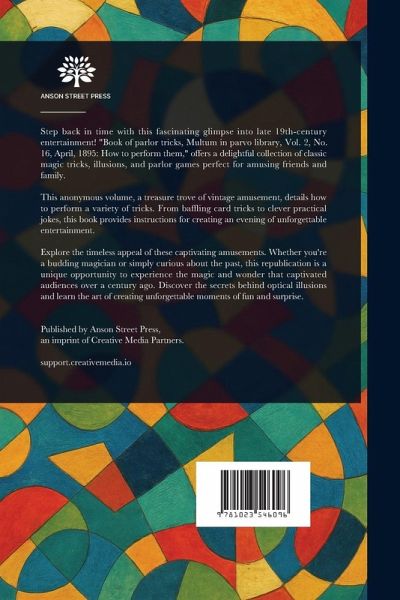 Step back in time with this fascinating glimpse into late 19th-century entertainment! "Book of parlor tricks, Multum in parvo library, Vol. 2, No. 16, April, 1895: How to perform them," offers a delightful collection of classic magic tricks, illusions, and parlor games perfect for amusing friends and family. This anonymous volume, a treasure trove of vintage amusement, details how to perform a variety of tricks. From baffling card tricks to clever practical jokes, this book provides instructions for creating an evening of unforgettable entertainment. Explore the timeless appeal of these captivating amusements. Whether you're a budding magician or simply curious about the past, this republication is a unique opportunity to experience the magic and wonder that captivated audiences over a century ago. Discover the secrets behind optical illusions and learn the art of creating unforgettable moments of fun and surprise. This work has been selected by scholars as being culturally important, and is part of the knowledge base of civilization as we know it. This work is in the public domain in the United States of America, and possibly other nations. Within the United States, you may freely copy and distribute this work, as no entity (individual or corporate) has a copyright on the body of the work. Scholars believe, and we concur, that this work is important enough to be preserved, reproduced, and made generally available to the public. We appreciate your support of the preservation process, and thank you for being an important part of keeping this knowledge alive and relevant.