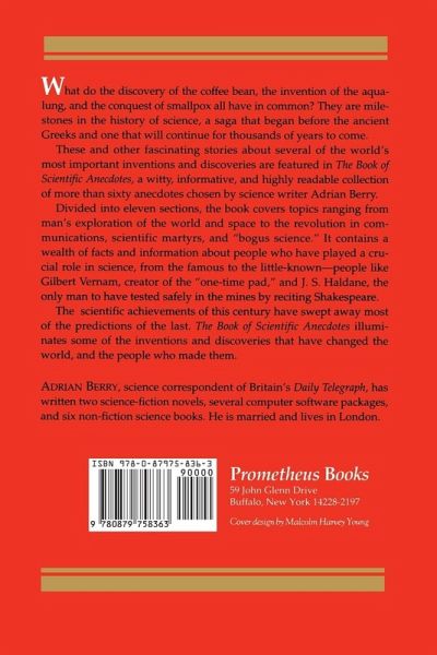 What do the discovery of the coffee bean, the invention of the aqualung, the perception of the importance of the size of the moon, the conquest of smallpox, and supersonic flight all have in common? They are milestones in the history of science, a saga that began before the ancient Greeks and one that will continue for thousands of years to come. These and other fascinating stories about several of the world's most important inventions and discoveries are featured in The Book of Scientfic Anecdotes. This witty, informative, and highly readable collection includes more than sixty anecdotes chosen and edited by science writer Adrian Berry. Divided into eleven sections, the book covers topics ranging from man's exploration of the world - and space - to the revolution in communications, scientific martyrs, and "bogus science". It contains a wealth of fascinating, little-known facts and information, as well as anecdotes about people who have played crucial roles in the progress of science - Louis Pasteur, Einstein, and Galileo - along-side lesser-known individuals -" Lucy", the woman who lived more than three million years ago; Gilbert Vernam, the creator of the "one-time pad", the world's first unbreakable cipher; and J. S. Haldane, the only man to have tested safely in the mines by reciting Shakespeare. The scientific achievements of this century - relativity, quantum mechanics, nuclear power, genetic engineering, space travel, jet aircraft, desktop computers, and the beginnings of artificial intelligence - have swept away most of the predictions of the last. What do these breakthroughs augur for the twenty-first century? The Book of Scientific Anecdotes illuminates some of the inventionsand discoveries that have changed the world, and the people who made them.