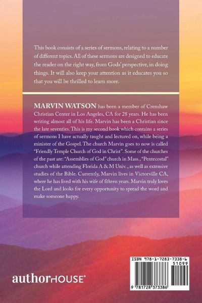 This book consists of a series of sermons, relating to a number of different topics. All of these sermons are designed to educate the reader on the right way, from Gods' perspective, in doing things. It will also keep your attention as it educates you so that you will be thrilled to learn more.