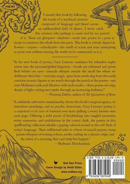 The Book of Spells is a collection of poems that believes the world around us is shaped and reshaped by language and that changing our language is a revolutionary act of political and social magic that can replace long-standing destructive agreements with the benignity of loving clarity. This collection of spells begins by following the tracks of a mythical creature composed of language and blood across an unblemished field of silence. We can never catch this creature, who perhaps is made real by our pursuit of it. There are glimpses-shadows—made into poems in a poor attempt to construct the…mehr