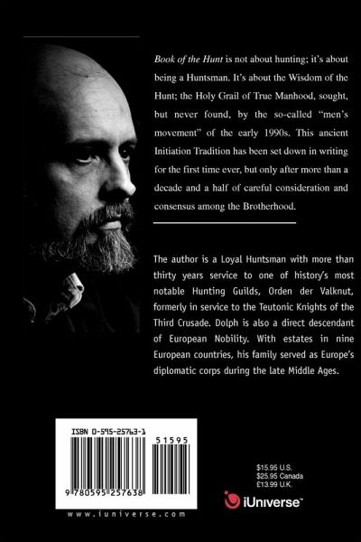 Book of the Hunt is not about hunting, it's about being a Huntsman. It's about the Wisdom of the Hunt; the Holy Grail of True Manhood, sought, but never found, by the so-called "men's movement" of the early 1990s. This ancient Initiation Tradition has been set down in writing for the first time ever, but only after more than a decade and a half of careful consideration and consensus among the Brotherhood.