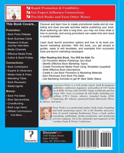 This book teaches you how to create promotional media and do marketing and book pre-sale activities before publishing your book. Book authoring can take a long time, authors may not know what or how to promote, and wrong promotion can waste time and result in social backlash. Book authors can do pre-launch marketing to earn book pre-sales and other money, rapidly get publicity and credibility, and to find and insert additional media into their book. During the pre-launch marketing process, Authors can make new connections with experts and book buyers, get review feedback for book updating, and use lists and other media to achieve #1 best seller status on Amazon and other retailers. With this book, you get access to 100+ guides, ready to edit templates, and examples from successful book pre-launch marketing campaigns. After reading this book, you will be able to: - Do Promotion Before Publishing Your Book - Identify Effective Book Marketing Topics & Channels - Create Promotional Media Posts Using Templates (supplied) - Write Effective Book Descriptions - Create & Use Book Promotion & Marketing Materials - Earn Revenues from Book Pre-Sales & Sponsorships - Use Marketing Activities to get #1 Best Seller Status Book Pre-Launch Management - how to organize your book pre-launch activities by creating a plan, task list, contact list, and other documents. Book Launch Research - how to find and review competitive books & materials, invite and talk to potential readers, and use research activities and materials in your marketing materials. Promotional Media - how to create effective descriptions, images, and media items and profiles that can be discovered or shared with potential reviewers, contributors, and buyers. Media Channels - ways to setup media services and profiles or services that allow you to be discovered by or reach and influence potential customers. Media Posts - how to create and publish messages that contain discoverable and motivational content. Marketing Campaigns - 20+ successful pre-launch marketing campaigns and how to do them.