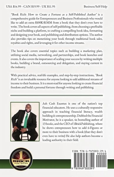 Book Rich: How to Create a Fortune as a Self-Published Author" is a comprehensive guide for Entrepreneurs and Business Professionals who would like to add an extra $100K-$1MM from a book they don't even have to write. The book covers all aspects of self-publishing, from choosing a profitable niche and building a platform to crafting a compelling book idea, formatting and designing your book, and publishing and distribution options. The author also provides tips on monetizing your book through traditional book sales, royalties, and rights and leveraging it for other income streams. The book also covers essential topics such as building a marketing plan, utilizing social media, networking and partnerships, and book launches and events. It also covers the importance of scaling your success by writing multiple books, building a brand, outsourcing, and delegation, and staying current in the industry. With practical advice, real-life examples, and step-by-step instructions, "Book Rich" is an invaluable resource for anyone looking to add additional streams of income to their business. It is a must-read for anyone looking to create financial freedom and build a personal fortune through writing and publishing.