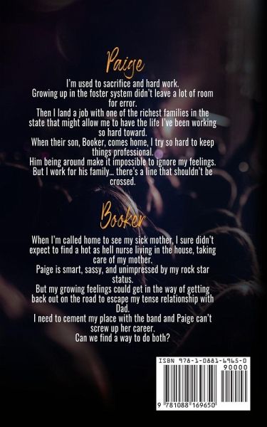 We come from opposite worlds and really shouldn't work... Paige I'm used to sacrifice and hard work. Growing up in the foster system didn't leave a lot of room for error. Then I land a job with one of the richest families in the state that might allow me to have the life I've been working so hard toward. When their son, Booker, comes home, I try so hard to keep things professional. Him being around make it impossible to ignore my feelings. But I work for his family... there's a line that shouldn't be crossed. Booker When I'm called home to see my sick mother, I sure didn't expect to find a hot as hell nurse living in the house, taking care of my mother. Paige is smart, sassy, and unimpressed by my rock star status. But my growing feelings could get in the way of getting back out on the road to escape my tense relationship with Dad. I need to cement my place with the band and Paige can't screw up her career. Can we find a way to do both?