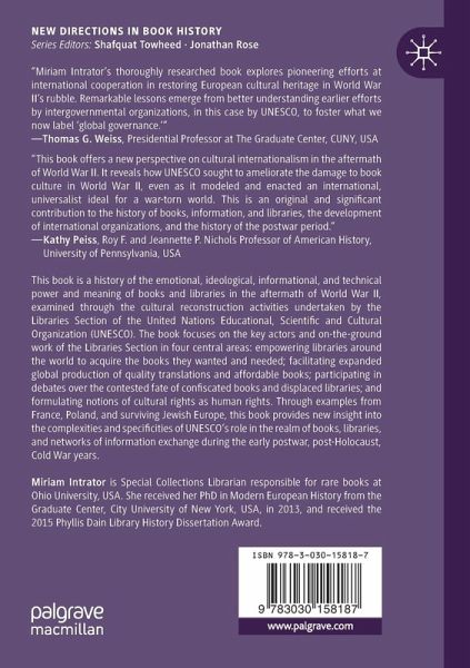 "It is well written and tells a complex tale in a clear and careful way. ... While librarians and book historians will find this book of great interest, it also deserves a broader audience. Intrator's study is invaluable for those who are interested in the history of global organizations such as UNESCO and its role in shaping understandings of culture after the Second World War, as well as its successes and failures on the ground." (Amanda Laugesen, Libraries- Culture, History, and Society, Vol. 5 (1), 2021)