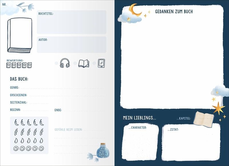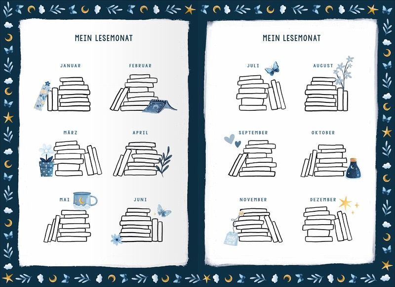 Dieses liebevoll gestaltete Lesetagebuch ist der perfekte Begleiter für alle, die Bücher lieben und ihre Leseerlebnisse festhalten möchten. Verziert mit bibliophilen Illustrationen von Dan Lin (@milkteadani) bietet es dir die Möglichkeit, deine Bücher zu bewerten, Lese-Challenges zu meistern sowie diverse Übersichten auszufüllen. So kannst du das Lesen noch mehr zelebrieren und jedes Buch zu einem besonderen Erlebnis machen!