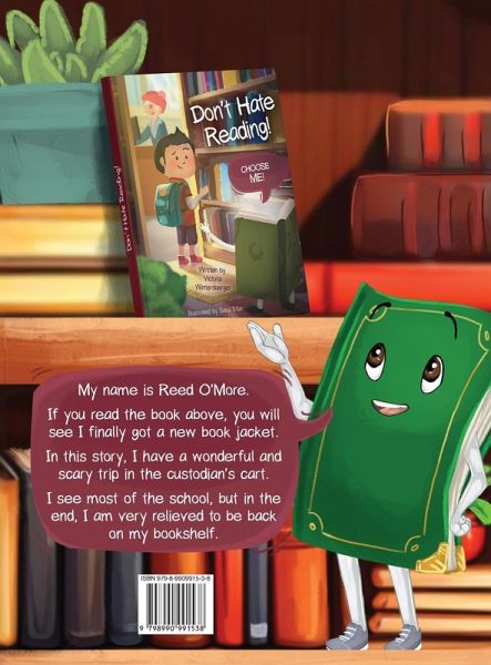 My name is Reed O'More. If you read the first book about me (Don't Hate Reading!), you will see I finally got a new book jacket. In this story, I have a wonderful and scary trip in the custodian's cart. I see most of the school, but in the end, I am very relieved to be back on my bookshelf.