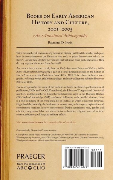 This volume offers a complete listing and description of books published on early America between 2001 and 2005. An extraordinary research tool, Books on Early American History and Culture, 2001-2005: An Annotated Bibliography is part of a series listing materials on the history of North America and the Caribbean from 1492 to 1815. This volume includes monographs, reference works, exhibition catalogs, and essay collections published between 2001 and 2005. Each entry provides the name of the work, its author(s) or editor(s), publisher, date of publication, ISBN and/or OCLC number(s), and the Library of Congress call number. Following each detailed citation, there is a brief summary of the work and a list of journals in which it has been reviewed. Organized thematically, the book covers, among many other topics, exploration and colonization; maritime history; environment; Native Americans; race, gender, and ethnicity; migration; labor and class; business; families; religion; material culture; science; education; politics; and military affairs.