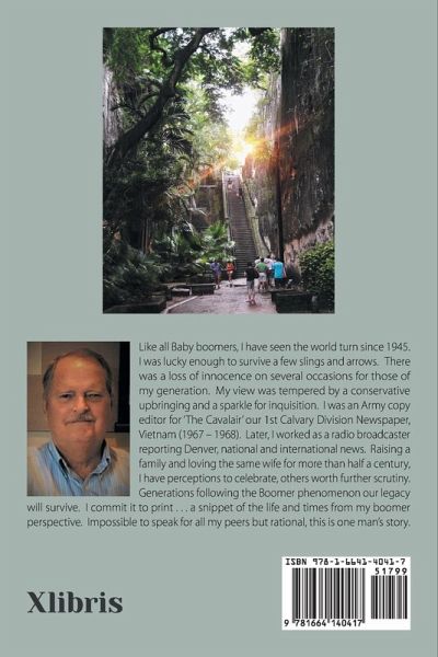 Living through the last half of the twentieth century myself and others my age are the Baby Boomer generation. From 1945 to the new millennium, life was different from the current perspective. I offer my viewpoint through the work that I performed, my religious affiliations and a modest college education. A cancer diagnosis also brought me some introspection. The nuts and bolts of life are wrapped up in decisions and our ability to execute a worthy existence. The name and dates on our generational tombstones are not enough. Like all anecdotes, there is more to the story! An early dedication to trust in Jesus Christ has made all the difference