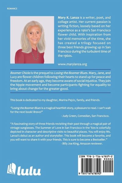 Boomer Chicks is the prequel to Losing the Boomer Blues . Mary, Jane, and Lucy are flower children following their hearts to stand up for peace and freedom. At an early age, they become aware of social injustice. They join the hippie movement and become participants fighting for equality to bring about change for the greater good.