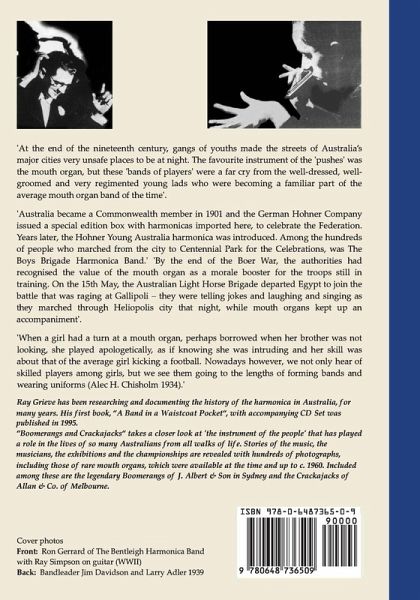 A detailed research study into the history of the harmonica (mouth organ) in Australia From 1825 to 1960. Contains approximately 200 photos and illustrations of instrument brands, adult and children’s competitions and events and stories of harmonica players and performers of the period.