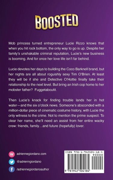 Mob princess turned entrepreneur Lucie Rizzo knows that when you hit rock bottom, the only way to go is up. Despite her family’s unshakable criminal reputation, Lucie’s new business is booming. And for once her love life isn’t far behind. Lucie devotes her days to building the Coco Barknell brand, but her nights are all about roguishly sexy Tim O’Brien. At least they will be if she and Detective O’Hottie finally take their relationship to the next level. But bring an Irish cop home to her mobster father? Fuggetaboutit. Then Lucie’s knack for finding trouble lands her in hot water—and the six o’clock news. Someone’s absconded with a million-dollar piece of cinematic costume history, with Lucie the only witness to the crime. Not to mention the prime suspect. To clear her name, she’ll need an assist from her entire wacky crew: friends, family…and future (hopefully) lover.
