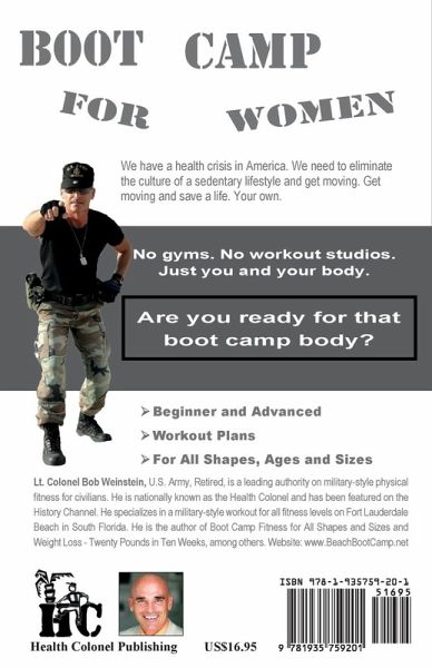 Women lead the way when it comes to group exercise. Hips, thighs, butt, triceps and abs are just some of the body parts focused on. Boot Camp for Women is full of natural complete body exercises and includes dumbbell, Swiss ball and resistance band exercises. Workout plans, sample food and fitness journal, the role of women in combat, world records and life values are a part as well.