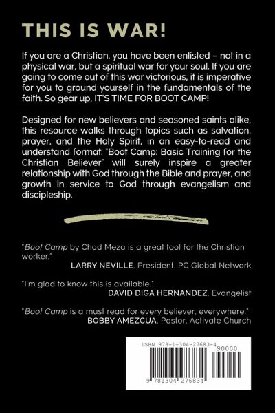 This is war! And if you are a Christian, you have been enlisted - not in a physical war, but a spiritual war for your soul. If you are going to come out of this war victorious, it is imperative for you to ground yourself in the fundamentals of the faith. So gear up, IT'S TIME FOR BOOT CAMP! Designed for new believers and seasoned saints alike, this resource walks through topics such as salvation, prayer, and the Holy Spirit, in an easy-to-read and understand format. "Boot Camp: Basic Training for the Christian Believer" will surely inspire a greater relationship with God through the Bible and prayer, and growth in service to God through evangelism and discipleship.