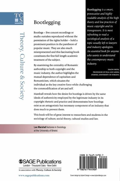 This book develops a sociological understanding of authorship and copyright, through a case study of bootlegging. Bootlegs are copies of recordings released without the permission of the rights holder. They hold a prominent position in the pantheon of popular music. Bootlegging constitutes the first academic treatment of the subject.