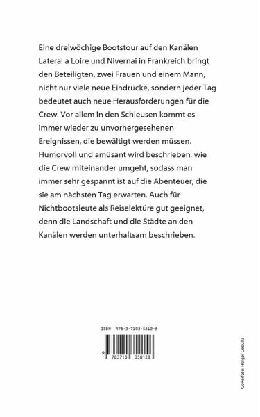 Zwei Frauen und ein Mann befahren mit einem Boot die französischen Kanäle Lateral a Loire und Nivernai. Witzig und amüsant wird beschrieben, wie die Crew miteinander umgeht, sodass man immer sehr gespannt ist auf die Abenteuer, die sie am nächsten Tag erwarten