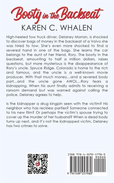 High-heeled tow truck driver, Delaney Morran, is shocked to discover bags of money in the backseat of a Volvo she was hired to tow. She's even more shocked to find a severed hand in one of the bags. She learns the car belongs to the aunt of her friend, Rory. The booty in the backseat, amounting to half a million dollars, raises questions, but more mysterious is the disappearance of Rory's uncle. Spruce Ridge, Colorado is home to the rich and famous, and the uncle is a well-known movie producer. With that much money...and a severed body part...and the uncle gone AWOL...Rory fears a kidnapping. When his aunt finally admits to receiving a ransom demand but was warned against calling the police, Delaney agrees to help. Is the kidnapper a drug kingpin seen with the victim? His neighbor who has reckless parties? Someone connected to his new film? Or, perhaps the victim's spouse trying to cover up the murder of her husband? When a dead body turns up next, and it's not the kidnapped victim, Delaney has two crimes to solve.