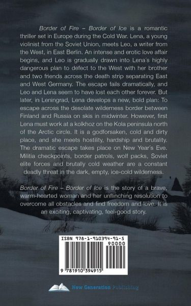Border of Fire - Border of Ice is a romantic thriller set in Europe during the Cold War. Lena, a young violinist from the Soviet Union, meets Leo, a writer from the West, in East Berlin. An intense and erotic love affair begins, and Leo is gradually drawn into Lenäs highly dangerous plan to defect to the West with her brother and two friends across the death strip separating East and West Germany. The escape fails dramatically, and Leo and Lena seem to have lost each other forever. But later, in Leningrad, Lena develops a new, bold plan: To escape across the desolate wilderness border between Finland and Russia on skis in midwinter. However, first Lena must work at a kolkhoz on the Kola peninsula north of the Arctic Circle. It is a godforsaken, cold and dirty place, and she meets hostility, hardship and brutality. The dramatic escape takes place on New Year¿s Eve. Militia checkpoints, border patrols, wolf packs, Soviet elite forces and brutally cold weather are a constant deadly threat in the dark, empty, ice-cold wilderness. Border of Fire - Border of Ice is the story of a brave, warm-hearted woman and her unflinching resolution to overcome all obstacles and find freedom and love. It is an exciting, captivating, feel-good story.