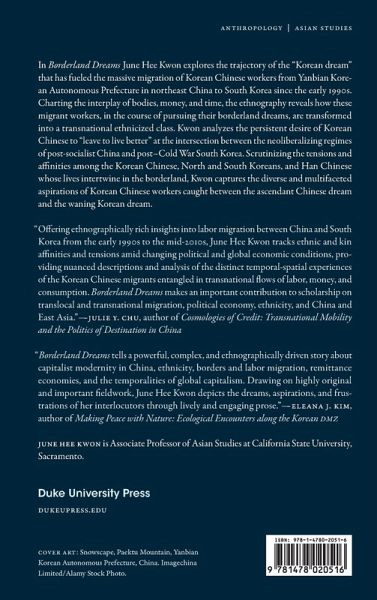 In Borderland Dreams June Hee Kwon explores the trajectory of the "Korean dream" that has fueled the massive migration of Korean Chinese workers from the Yanbian Korean Autonomous Prefecture in northeast China to South Korea since the early 1990s. Charting the interplay of bodies, money, and time, the ethnography reveals how these migrant workers, in the course of pursuing their borderland dreams, are transformed into a transnational ethnicized class. Kwon analyzes the persistent desire of Korean Chinese to "leave to live better" at the intersection between the neoliberalizing regimes of post-socialist China and post-Cold War South Korea. Scrutinizing the tensions and affinities among the Korean Chinese, North and South Koreans, and Han Chinese whose lives intertwine in the borderland, Kwon captures the diverse and multifaceted aspirations of Korean Chinese workers caught between the ascendant Chinese dream and the waning Korean dream.