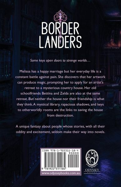 Some keys open doors to strange worlds... Melissa has a happy marriage but her everyday life is a constant battle against pain. She discovers that her artwork can produce magic, prompting her to apply for an artist's retreat to a mysterious country house. Her old schoolfriends Bettina and Zelda are also at the same retreat. But neither the house nor their friendship is what they think. A mystical library, rapacious shadows, and keys to otherworldly rooms are the links to saving the house from destruction. A unique fantasy about people whose stories, with all their oddity and excitement, seldom make their way into novels.