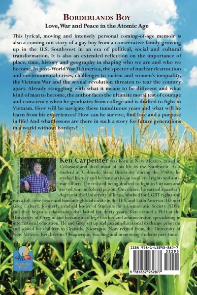 This lyrical, moving and intensely personal coming-of-age memoir is also a coming out story of a gay boy from a conservative family growing up in the U.S. Southwest in an era of political, social and cultural transformation. It is also an extended reflection on the importance of place, time, history and geography in shaping who we are and who we become. In post-World War II America, the specter of nuclear destruction and environmental crises, challenges to racism and women’s inequality, the Vietnam War and the sexual revolution threaten to tear the country apart. Already struggling with what it means to be different and what kind of man to become, the author faces the ultimate moral test of courage and conscience when he graduates from college and is drafted to fight in Vietnam. How will he navigate these tumultuous years and what will he learn from his experiences? How can he survive, find love and a purpose in life? And what lessons are there in such a story for future generations in a world without borders?