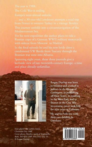 Spanning 1988-1996: a circumnavigation of the Mediterranean in an old Bentley; a ride west from Moscow on a Russian version of a German WWII military motorcycle; and a Italian-Balkan trip through a war zone in a condemned VW Beetle. A window on Europe's post-Cold War near-abroad.