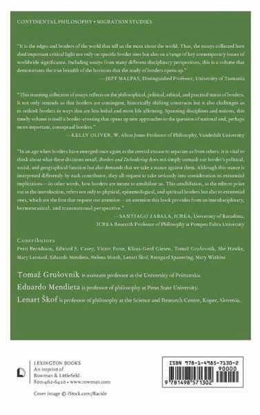 Borders / Debordering: Topologies, Praxes, Hospitableness engages from interdisciplinary and transnational perspectives some of the most important issues of the present, which lay at the intersection of physical, epistemological, spiritual, and existential borders. The book addresses a variety of topics connected with the role of the body at the threshold between subjective identities and intersubjective spaces that are drawn in ontology, epistemology and ethics, as well as with borders inscribed in intersubjective, social, and political spaces (such as gender/sexuality/race, human/animal/nature/technology divisions). The book is divided in three sections, covering various phenomena of borders and their possible debordering. The first section offers insights into bordering topologies, from reflections on the U.S. border to the development of the concept of the "border" in ancient China. The second section is dedicated to practices as well as intellectual ontologies with practical implications bound up with borders in different cultural and social spheres – from Buddhist nationalism in Sri Lanka and Myanmar to contemporary photography with its implications for political systems and reflections on human/animal border. The third section covers reflections on hospitality that relate to migration issues, emerging material ethics, and aerial hospitableness.