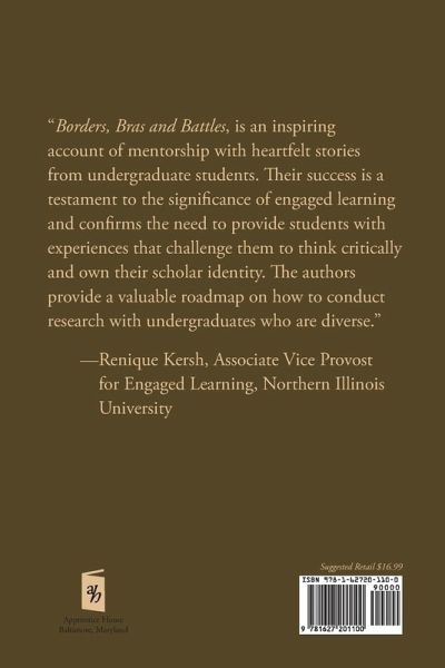 Written by La Vonne I. Neal, Ph.D., Sarah Militz-Frielink, M.S.Ed., Alicia L. Moore, Ph.D., Karina Avila, Maria Colompos, Shanell Walter "Borders, Bras and Battles, is an inspiring account of mentorship with heartfelt stories from undergraduate students. Their success is a testament to the significance of engaged learning and confirms the need to provide students with experiences that challenge them to think critically and own their scholar identity. The authors provide a valuable roadmap on how to conduct research with undergraduates who are diverse." -Renique Kersh, Associate Vice Provost for Engaged Learning, Northern Illinois University